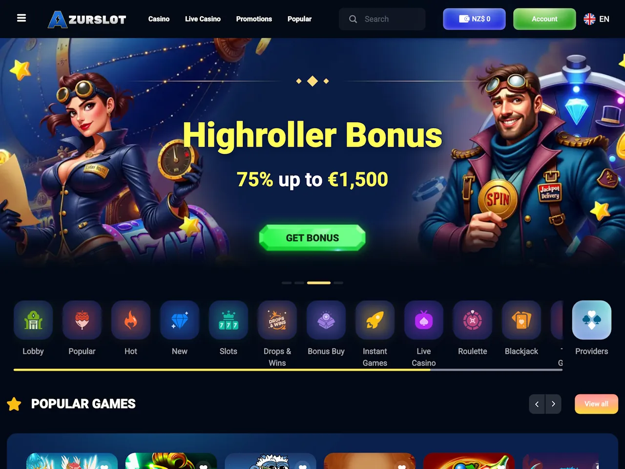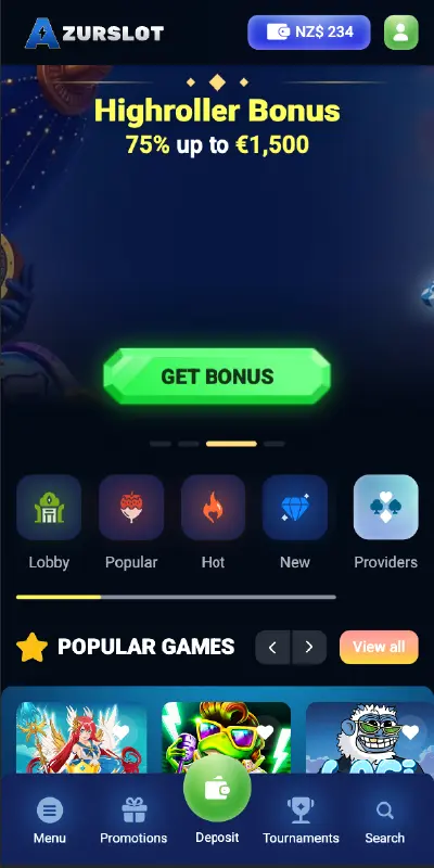 AzurSlot Casino wins players over with clarity, speed, and choice. The site opens to a simple interface where everything feels exactly where it should be, from the game categories to the cashier. Its game library has thousands of titles from top developers and lesser-known studios. For players’ complete convenience, AzurSlot supports fast withdrawals and offers several crypto withdrawal options.
