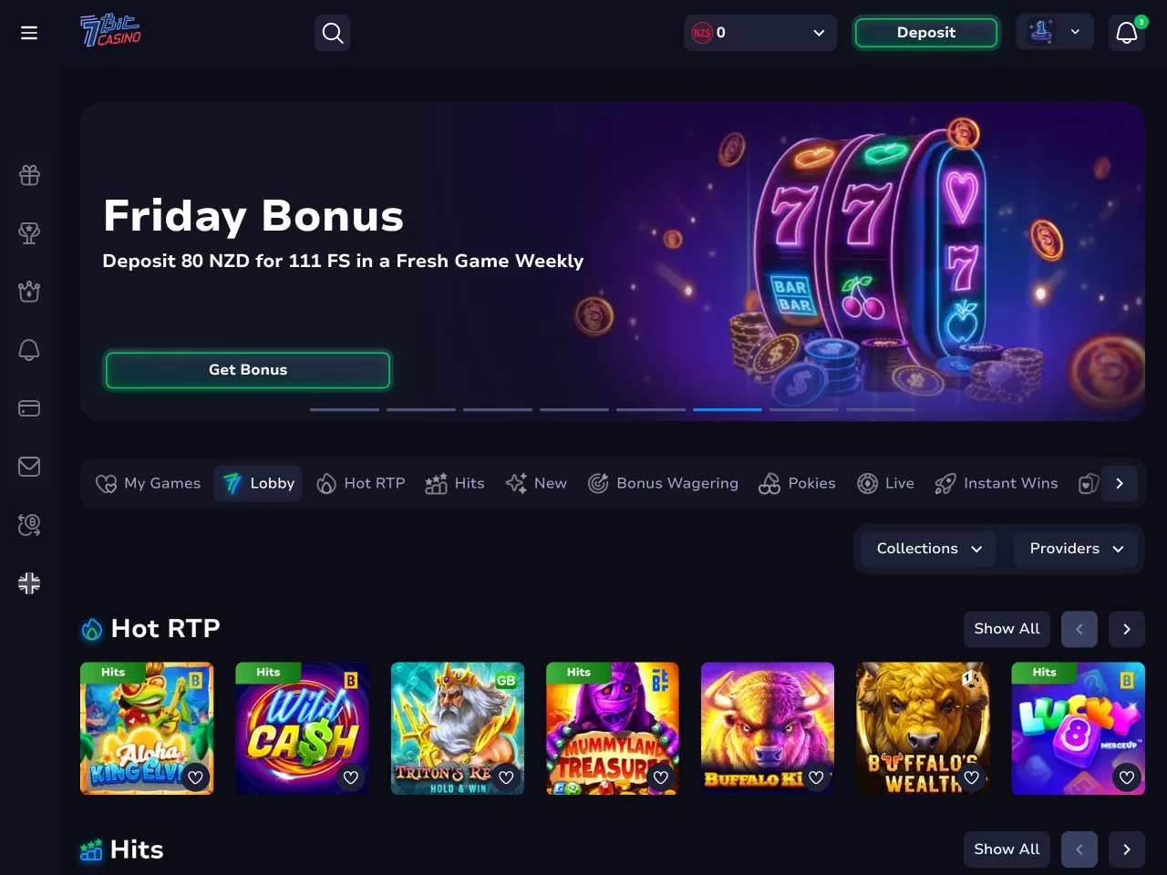 7Bit Casino offers a variety of games, including pokies, table games, and live dealer options. Yet, pokies remain the most beloved among Kiwi players. That is why 7Bit Casino offers a vast selection of pokie types, such as classic three-reel games, modern video titles, and even progressive jackpots. Popular options feature diverse themes and mechanics, catering to various player preferences, and they include Starlight Princess 1000, Aztec Clusters, Wildstock, Coin Win: Hold The Spin, and Buffalo Trail.. Players can additionally explore categories such as Megaways, Bonus Buy, and high-risk games.