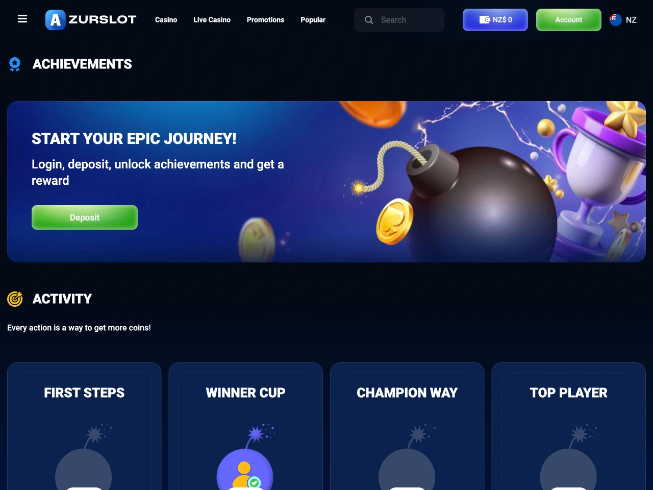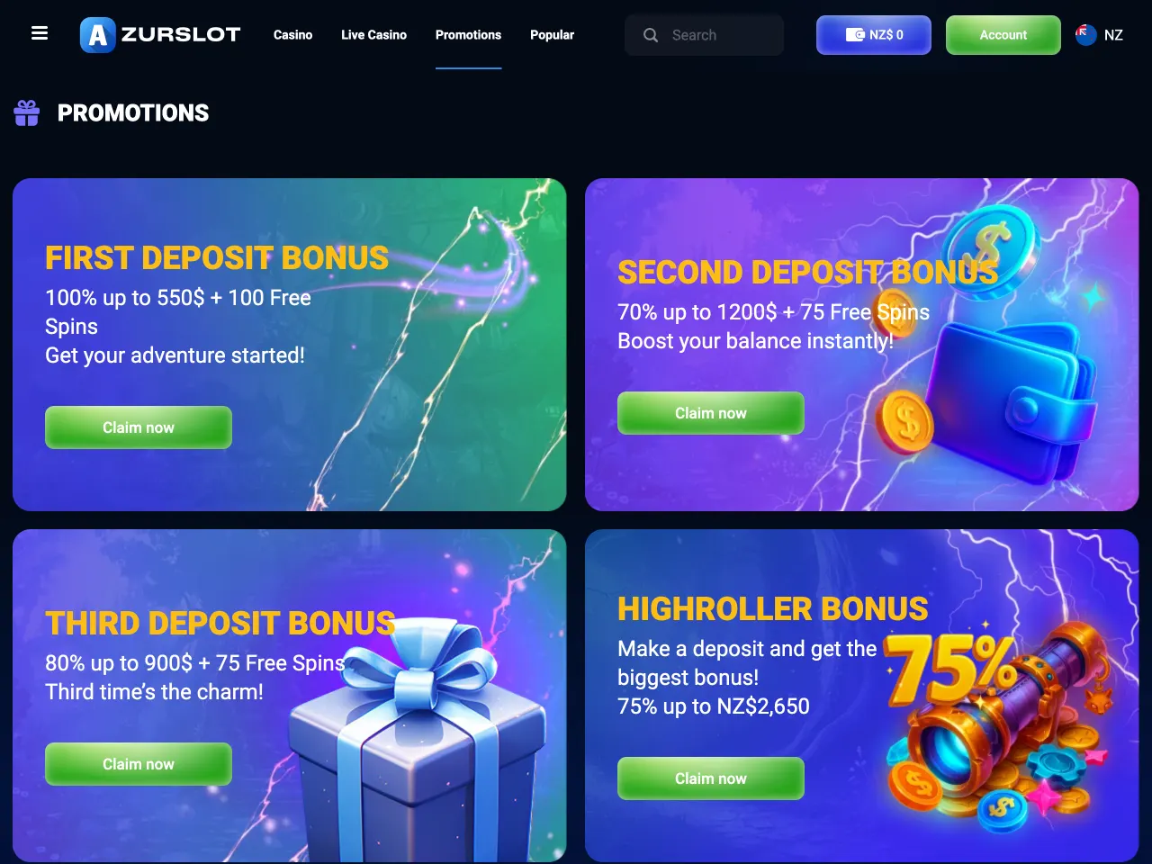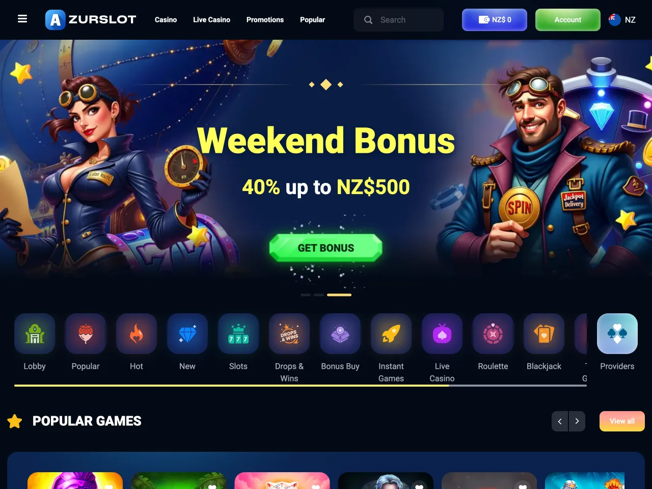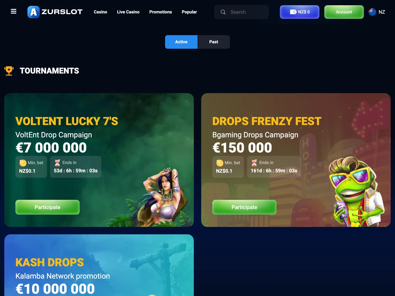 AzurSlot accepts players from New Zealand and allows account registration, deposits, and withdrawals in NZD. Geolocation restrictions are applied automatically; users from blocked regions cannot access the site. All legal and licensing information remains consistent across accessible versions. Customer support is available in English. Content, including terms and promotional material, is presented without region-specific changes. While no dedicated NZ version exists, the currency and language support make its intent clear.