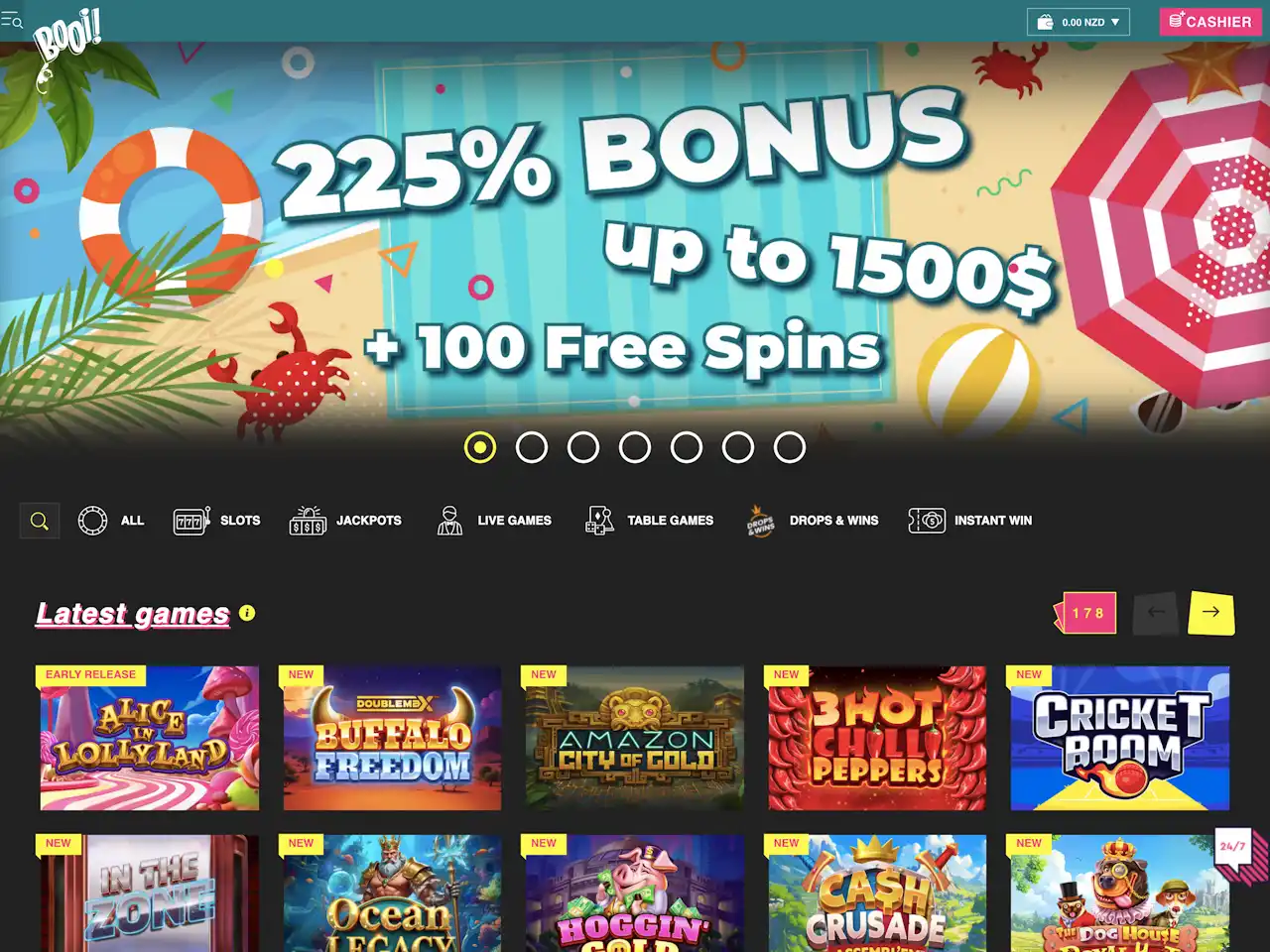 Booi Casino is a Curacao-licensed online casino catering to players with a vast selection of over 10,000 games, 800 of which are live dealer games, offering one of the best live dealer game selections among all casinos that BetPokies’ve reviewed. Booi Casino also engages players by offering a themed VIP program and various promotions, e.g., a welcome package with a minimum deposit required of only $10, cashback, a no-deposit bonus, etc. The casino site has a pleasant design, which was inspired by jungles. However, the website's navigation leaves more to be desired, since different tabs are located in unexpected places, and one needs some time to locate them. Our testing revealed that customer support via live chat is responsive and available 24/7, with inquiries answered within minutes. However, we also noticed some complaints from users about response delays. The process of placing funds in your Booi account is instant and can be done with such options as e-wallets, bank cards, and cryptocurrencies. As for the withdrawals, our team didn’t experience any delays or issues while testing the process.