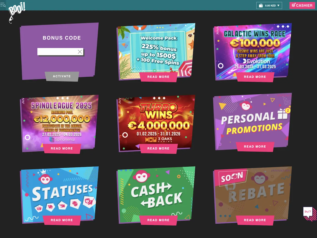 Booi Casino supports NZD transactions and offers many convenient payment options for deposits and withdrawals. Players can use different methods, like MiFinity, Skrill, Neteller, Jeton, Visa, Mastercard, and cryptocurrencies. The minimum deposit amount is $20, and the maximum amount you can withdraw per transaction is $3,000. The deposits in the casino are instant, as well as withdrawals with crypto and e-wallets. However, the pending time for withdrawals with bank cards takes from 3 to 5 days. Also, Booi Casino doesn’t charge any fees for the transactions.