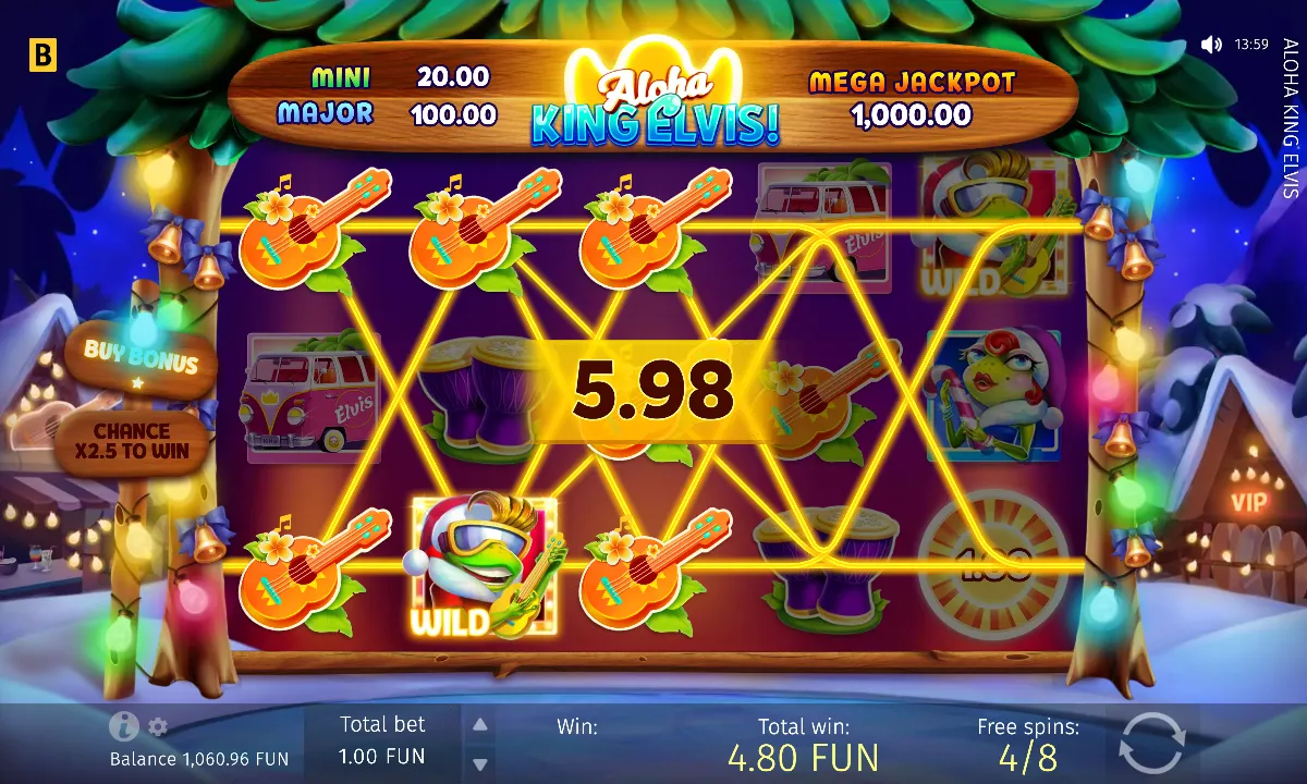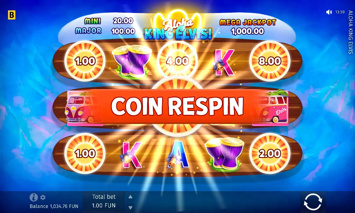In Aloha King Elvis, you can place bets from €0.25 up to €80 per spin, making it suitable for both casual players and high rollers.