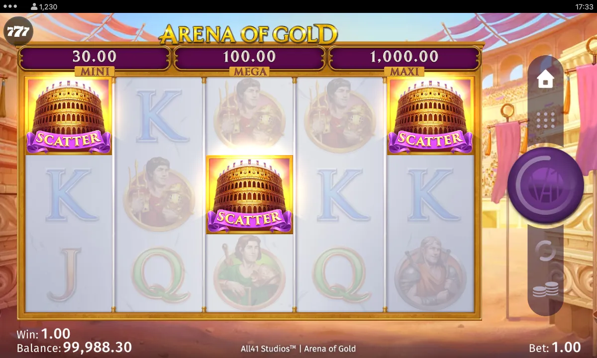 ![]() Colosseum (SCATTER) | 3 — x1 Scatter wins are multiplied by the total bet staked. Scatter wins are added to payline wins. Scatters pay in any position. • Scatters only appear on reels 1, 3, 5 in the base game |