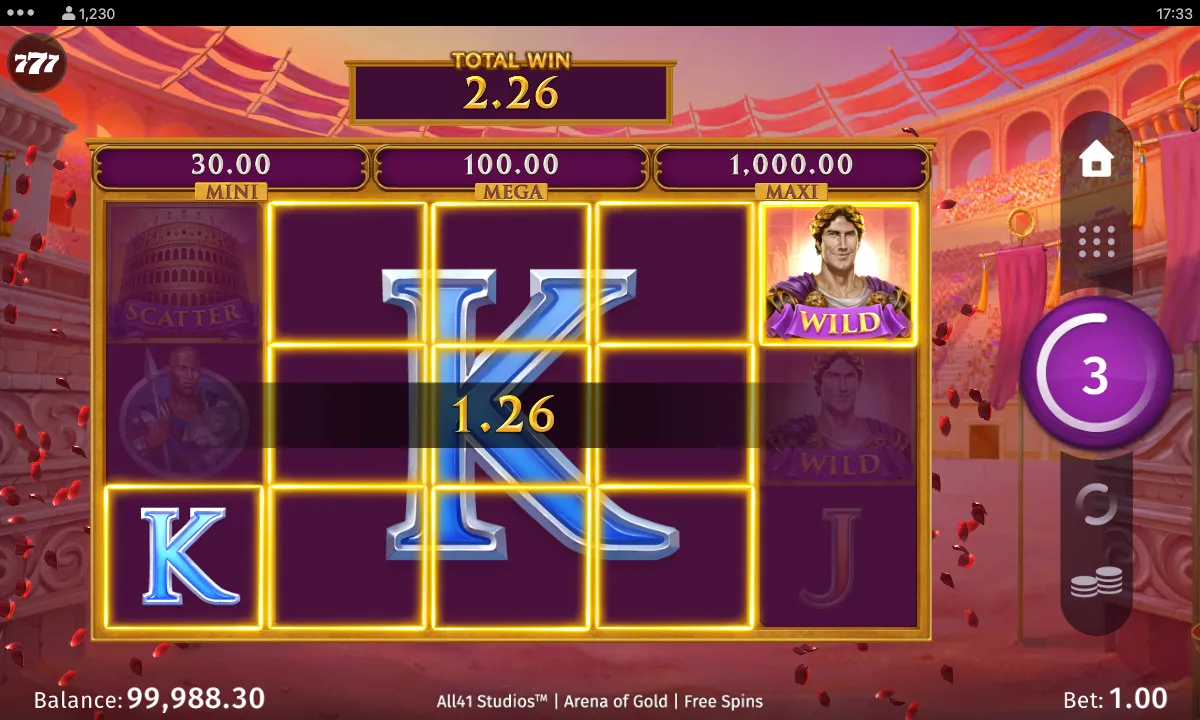 ![]() Roman Emperor (WILD) | 5 — x20 4 — x10 3 — x1 Wilds can substitute for all symbols except Scatters and Coin symbols |