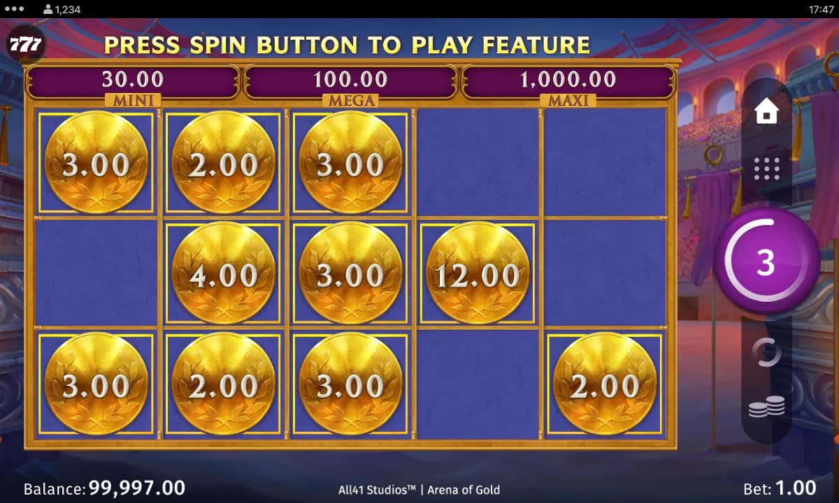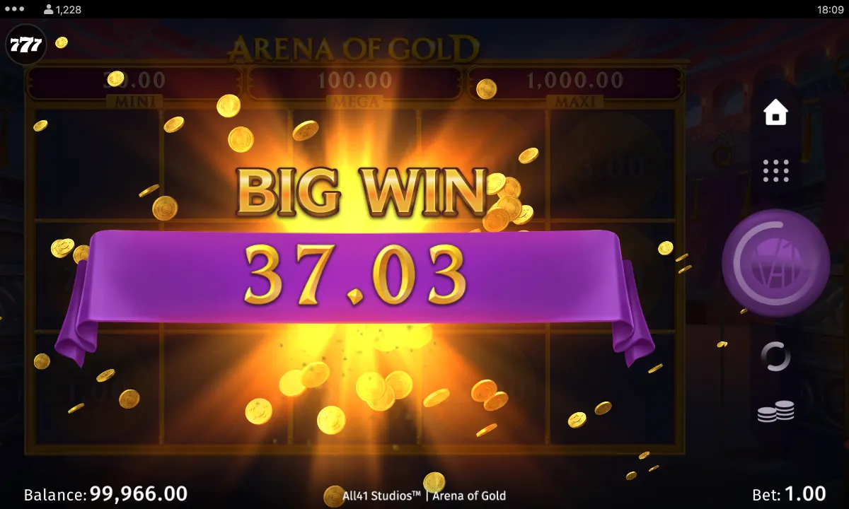 ![]() Coin symbol | The Link&Win™ Award jackpot feature triggers when 6 or more coin symbols land anywhere on the reels, either in the base game or during free spins. It begins with 3 respins on special reels that contain only coin symbols and blank positions. Each new coin that lands sticks in place, reveals a multiplier prize, Mini Jackpot, or Mega Jackpot, and resets the respin count back to 3. Coins remain on screen throughout the feature, and respins continue until the count reaches zero or all symbol positions are filled. Upon completion, all prizes from the collected coins are awarded, with filling every position granting the Maxi Jackpot. |