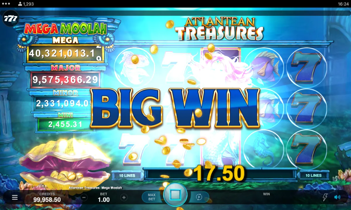 Fourteen years after the launch of Mega Moolah, Microgaming, in collaboration with the Neon Valley studio, developed a fantastic sequel pokie. What’s the upgrade? Higher RTP and volatility, more impressive max win potential, broader bet range, and definitely next-level graphics, which take you from safari to the underwater world. We dived deeper into Atlantean Treasures Mega Moolah to see what golden pearl it hides, and here’s what we revealed.