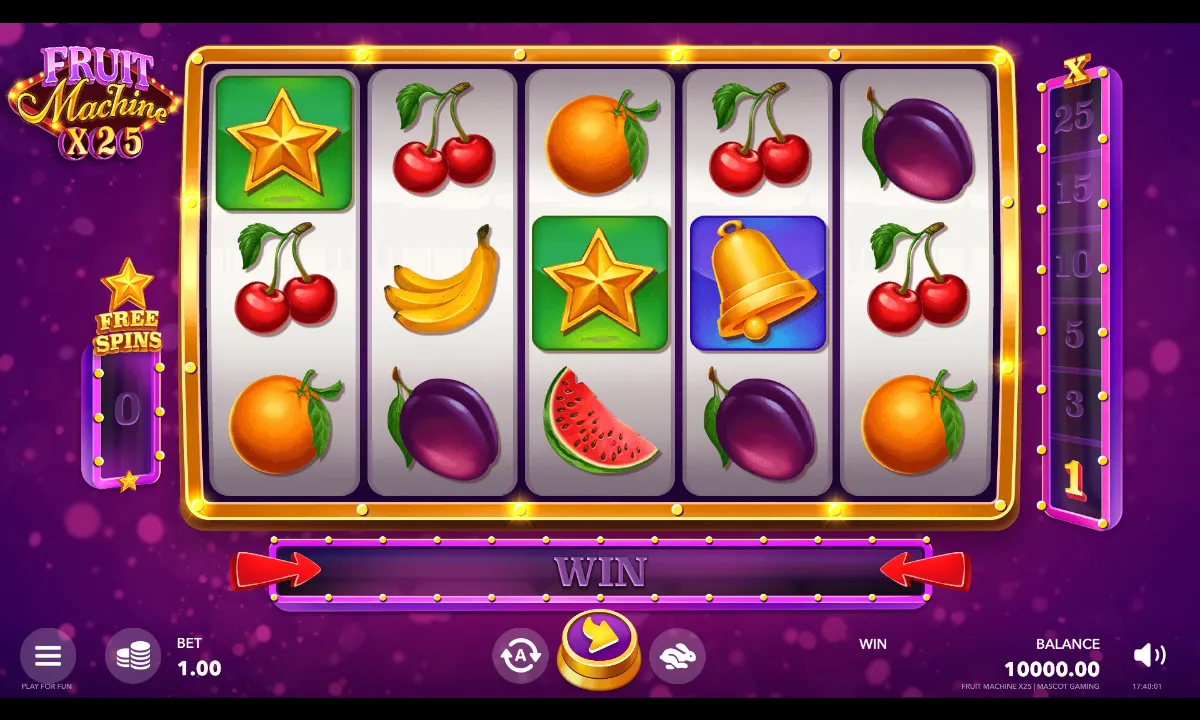 Unfortunately, the Buy Bonus feature is unavailable in this pokie. Triggering Free Spins happens only by landing enough Scatters. It lets us assume that Fruit Machine x25 is designed for players who appreciate it when things go the natural way.