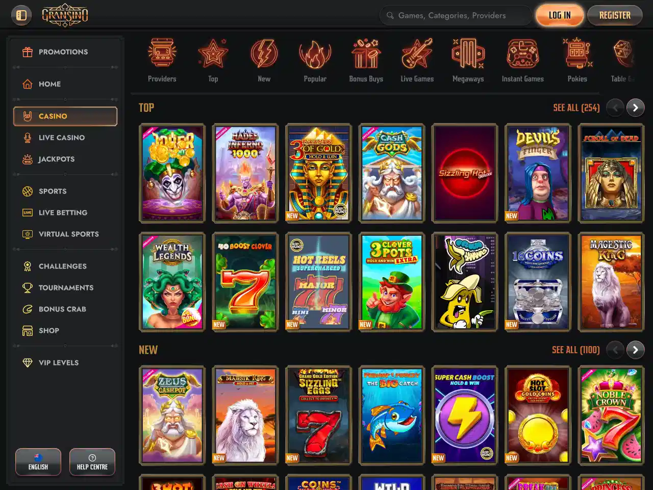 Gransino offers a sprawling mix of pokies, table games, and exclusive options, with over 350 live casino tables — more than many other platforms Kiwis might be used to. Blackjack, roulette, baccarat, keno, video poker, and even bingo are all represented. Pokies are the most popular game at Gransino, featuring multiple types, including fruit pokies, Megaways, progressive jackpots, and titles with many other features. Navigation on the site clearly separates new, top, and popular picks.