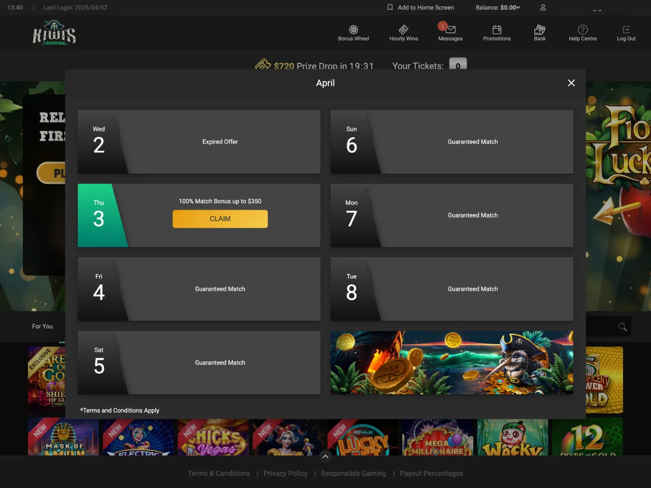 In addition to the welcome package, Kiwi Treasure also offers daily bonuses through its Bonus Calendar. This system gives the player the chance to look at the available offers on a particular day of the week, such as daily spins and deposit offers.