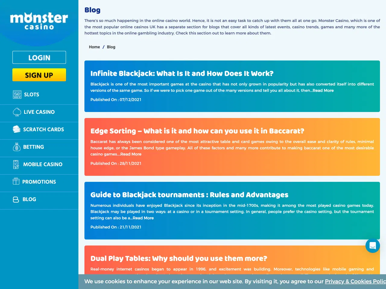 Although Monster Casino doesn’t offer an exceptionally large number of games, you still can enjoy many pokies, table and live games. There, you can also claim no-deposit free spins bonuses, as well as participate in numerous seasonal promotions. Monster has an installable app for both iOS and Android devices, catering to mobile players. The website has sports betting options, with multiple bonuses for both casino and sports customers. To ensure the casino's players are safe, Monster provides a nice selection of responsible gaming tools, including various limits. Besides, if you want to combine gambling with some educational experience, the casino offers a Blog section, where the players can engage themselves in some fresh iGaming world news, win strategies, and professional tips.