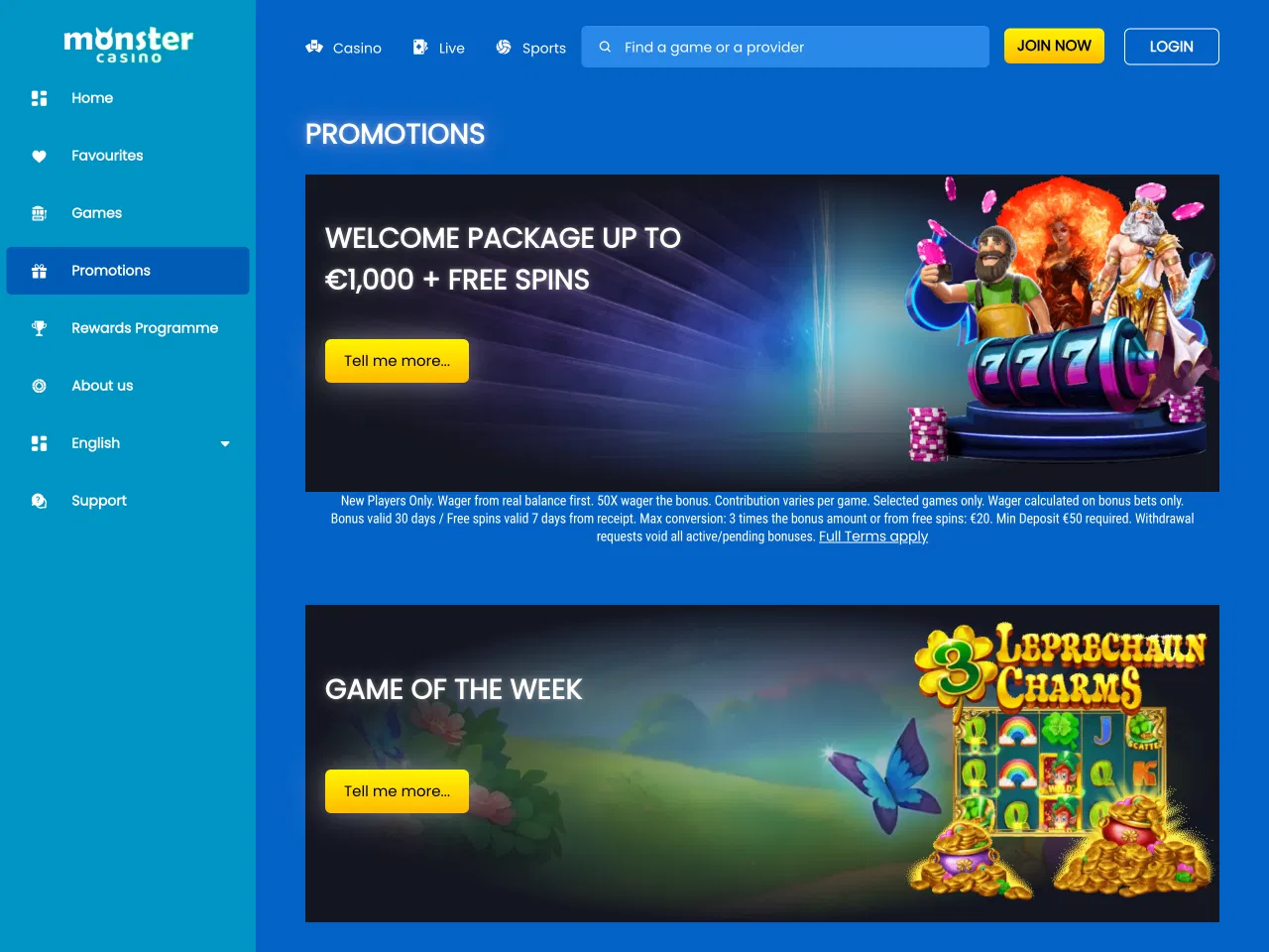 Monster Casino runs a multi-tiered Rewards Programme with daily, weekly, and monthly benefits. Rewards include cashback, free spins, and match bonuses. Players earn points through real-money bets and can exchange them for bonuses or spins. The structure includes time-limited missions, prize tournaments, and cash drop events. Your status affects the size of the rewards — higher-tier users get better returns. There’s a dashboard that tracks progress, including completed missions and remaining offers. Some bonuses from the program expire in 24 hours, which makes timing important. Entry into the program is automatic upon registration. There’s no fixed schedule for tier updates, which may confuse some users.