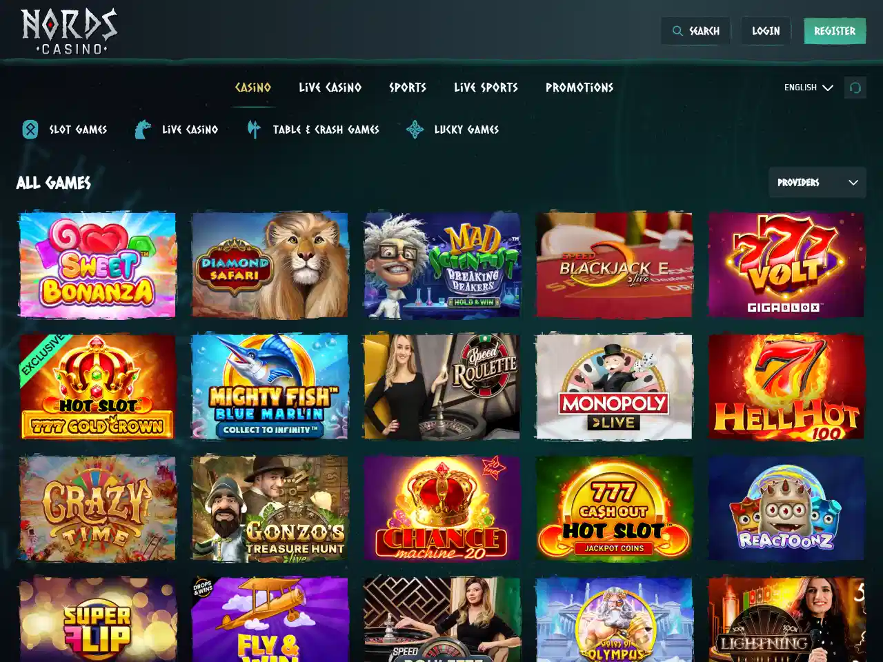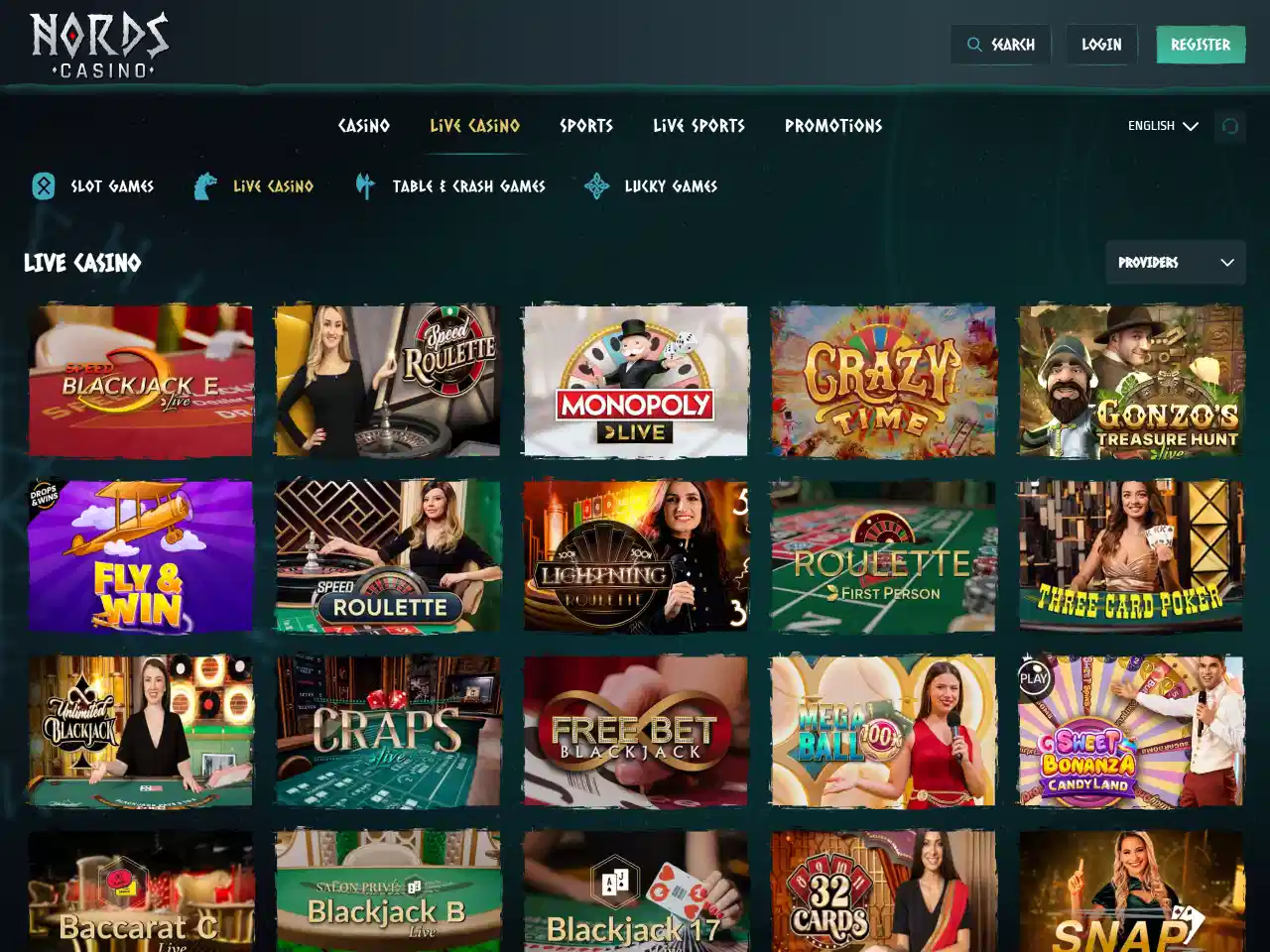 Nords Casino features over 4,000 games, including a standout selection of 600+ live dealer titles (which is more than in most casinos on the market). Live titles include blackjack, roulette, baccarat, monopoly, craps, game shows, and more. Also, players can dive into pokies, table options, and crash games. Overall, all the games load fast, with only a few titles having some lags during testing.