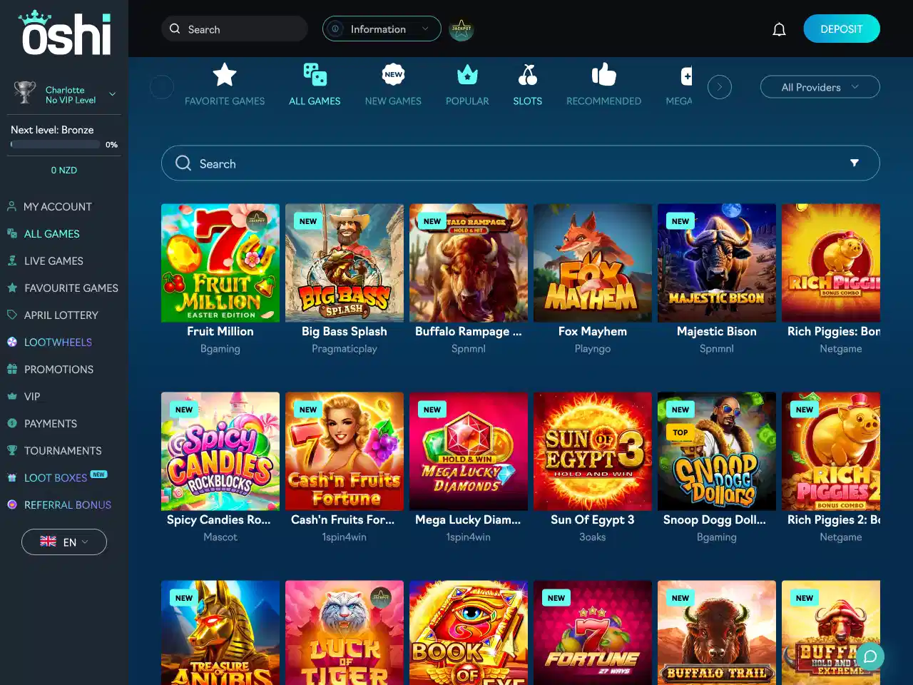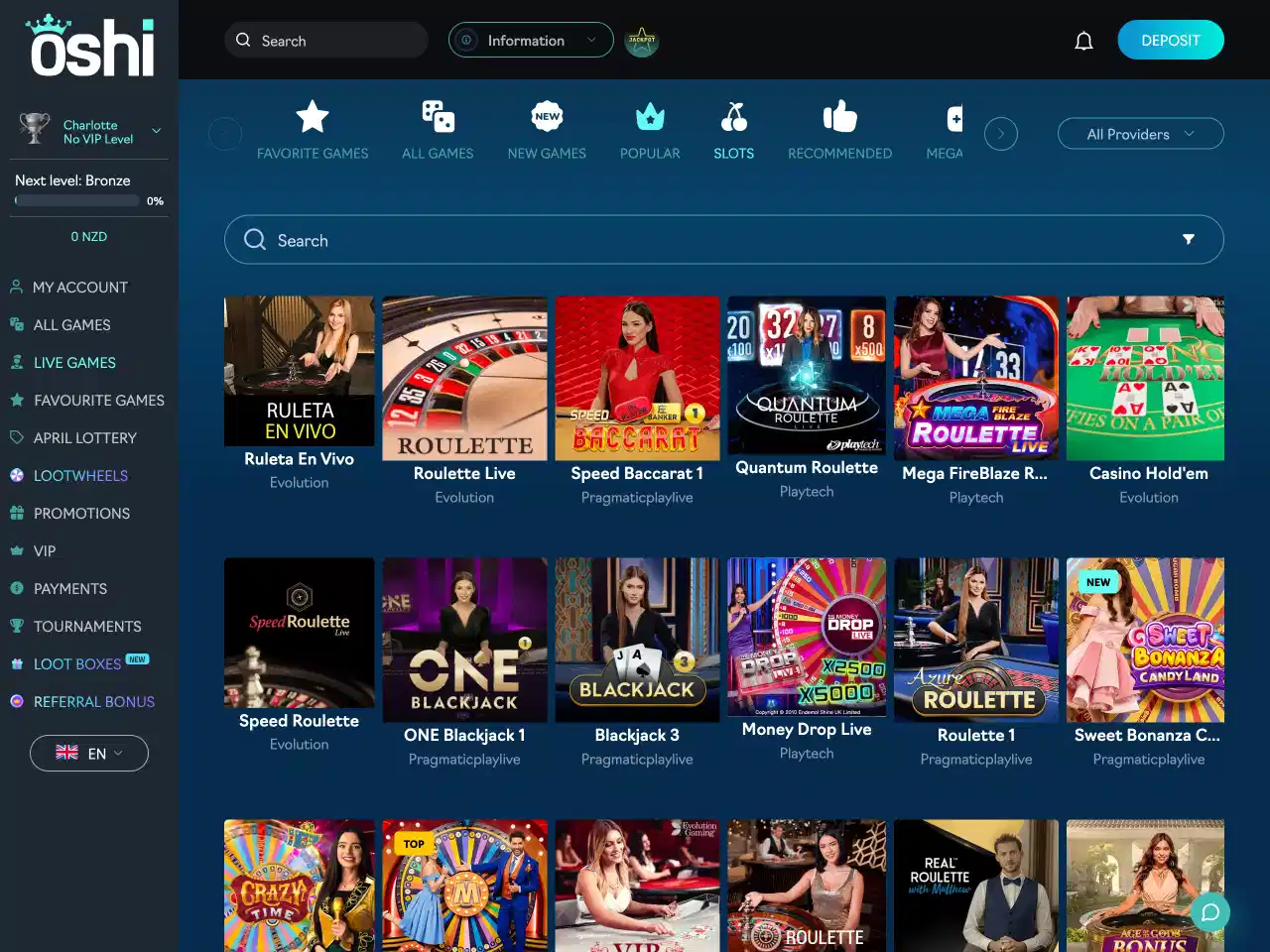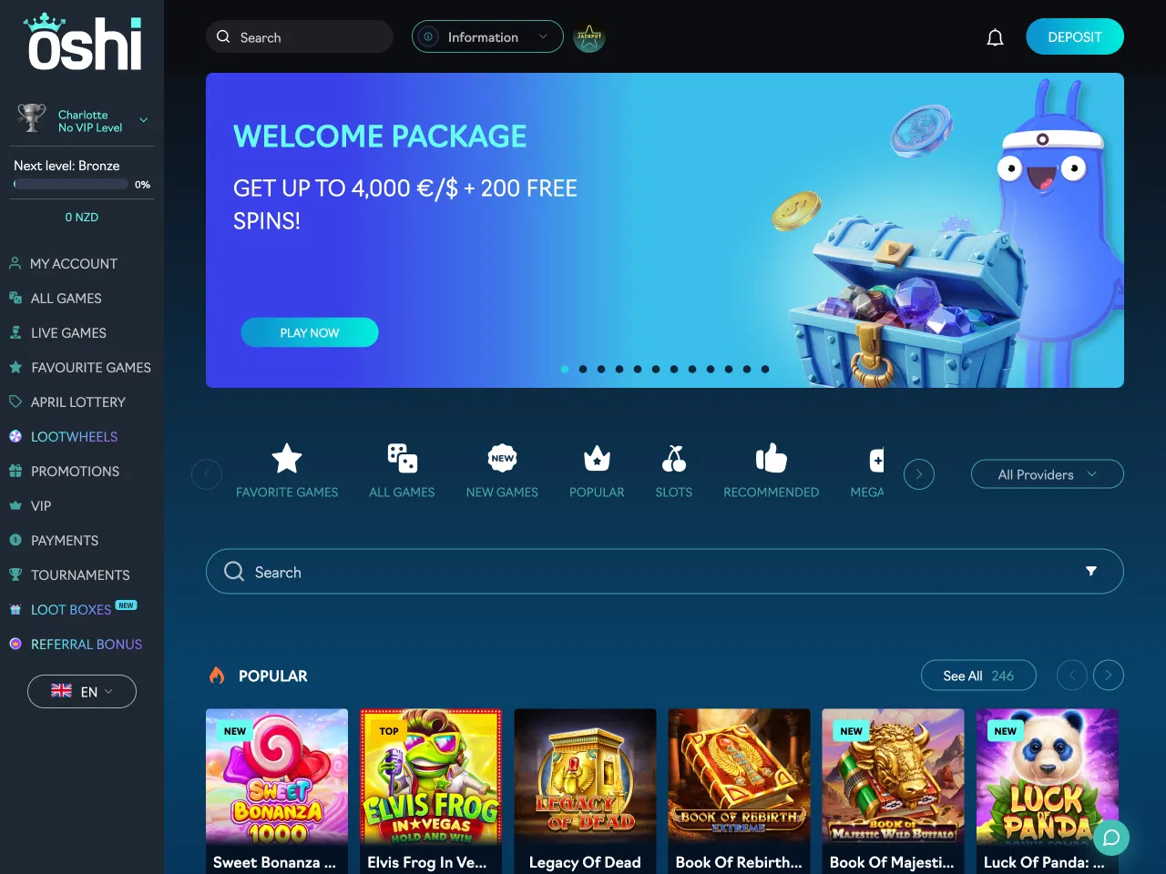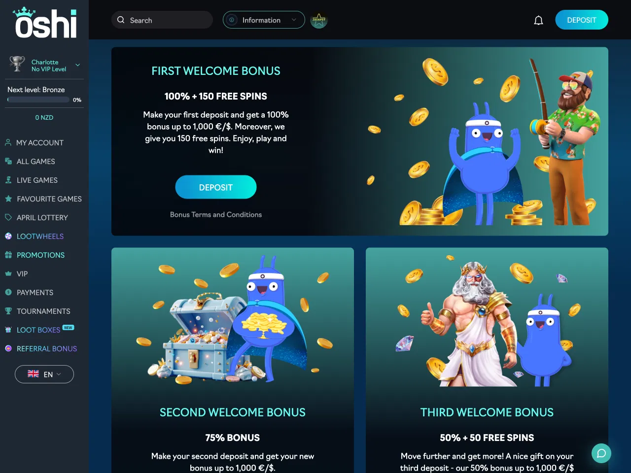 Yes, Oshi Casino accepts deposits in various currencies, including NZD. You can choose your preferred currency while you create an account.