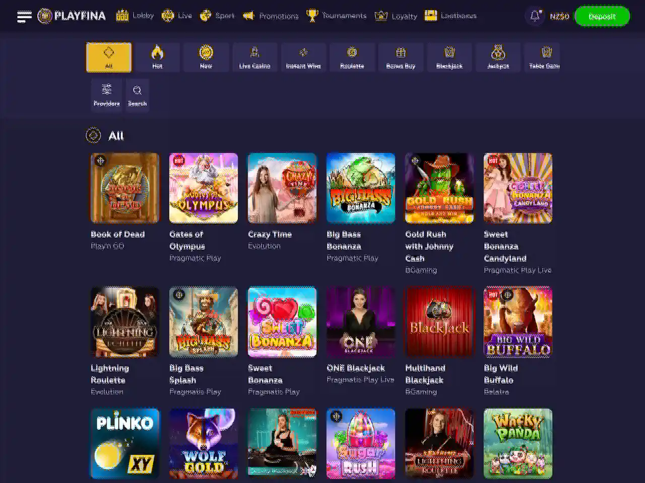 This casino collaborates with around 100 game developers, including NetEnt, BGaming, Betsoft, Onlyplay, Spinomenal, Mascot Gaming, Evolution Gaming, and Pragmatic Play, to offer a diverse gaming experience. This extensive selection includes a wide range of pokies, table games, jackpots, and live dealer options. Overall, Palyfina’s collection of over 12,000 games can satisfy even the pickiest gamblers in New Zealand. Also, if you have a favourite game creator, it is easy to find its titles, since you can filter all the games by their developers and types.