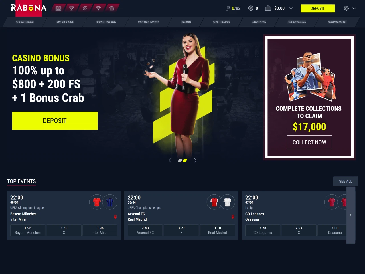 Rabona Casino draws players’ attention with its huge game collection of more than 13,000 titles. They include a wide selection of 400+ live dealers, a Live Trivia Game twice a week, and exclusive titles specially developed for this casino. In addition to that, Rabona offers many bonuses, such as two welcome packs to choose from (for casino games and sports betting), weekly reloads with cashback and free spins, Sunday Spins, and many more. Moreover, for players' convenience, Rabona Casino provides an application for iOS and Android mobile devices, as well as for Mac OS and Windows desktops.