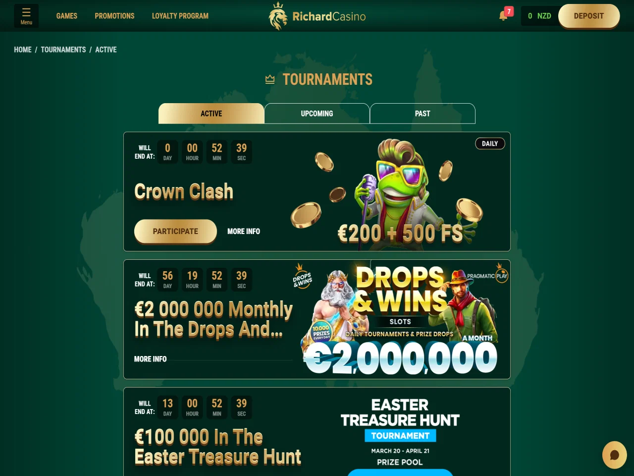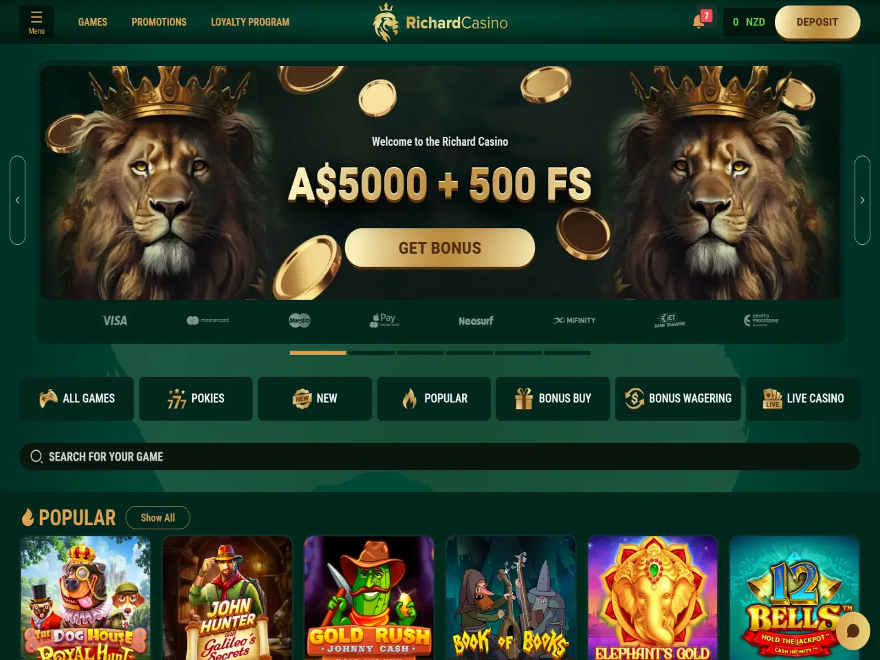 Richard Casino offers a distinctive 177-level loyalty program, providing players with escalating rewards as they advance. There is also a VIP club with a standard number of benefits. Kiwis can make NZD deposits and withdrawals without currency conversion. Deposits are instant across various methods, including credit cards, e-wallets, and cryptocurrencies. Withdrawals via e-wallets and cryptocurrencies are processed on the same day, while bank transfers may take three to five days. Customer support is available 24/7 through live chat and e-mail. Live chat is the most convenient way to contact the casino, since response time is typically just a few minutes. Despite all the pros of the casino, BetPokies experts found the website's navigation slightly challenging. In addition, we discovered several negative reviews about delays in withdrawals, but our experts did not encounter this problem.