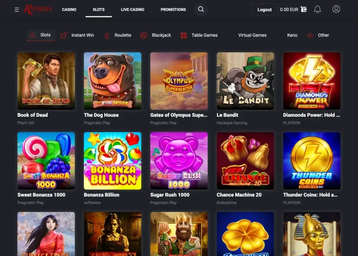Featured pokie titles include Sweet Bonanza, Book of Dead, and Le Bandit, offering free spins and expanding symbols to boost excitement. RTPs are displayed directly on game tiles (94.25%–96.71%), ensuring players know the odds before playing. Providers include Pragmatic Play, Play'n Go, and Hacksaw, guaranteeing variety in both style and mechanics. Popular pokies are highlighted in a dedicated section for easy access. Riviera regularly updates its library, ensuring that new releases appear promptly, keeping the selection fresh for returning players.