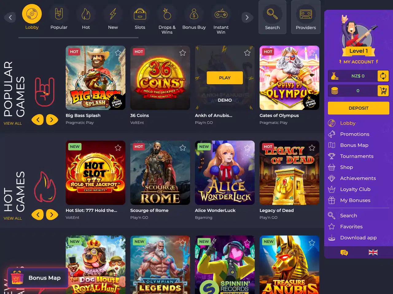 For having a distinctive rock theme, Rolling Slots Casino is highly rated, especially for its game collection, which consists of over 16,000 games, including around 1,000 live titles, from 120+ providers. The casino accepts payments via Mastercard, MiFinity, Skrill, and even Bitcoin. While deposits are instant, withdrawals tend to take 1 to 5 days, which is longer than the average market time. Rolling Slots offers a nice gamification for the players, including the Achievements system and the travelling-themed Bonus Map. The welcome bonus includes a nice prize, although the match-up bonus has a 45 cash-out requirement, which some players may find unfair. Customer support is offered via email and live chat 24/7. However, there are no phone support services. Our team found some negative reviews spread by other players regarding the delays players experience when trying to withdraw funds due to KYC verification processes. BetPokies’ experts did not encounter this problem in their research. Additionally, Rolling Slots has an 89% user satisfaction rating on this website which indicates that most players enjoy their time on this gambling site.