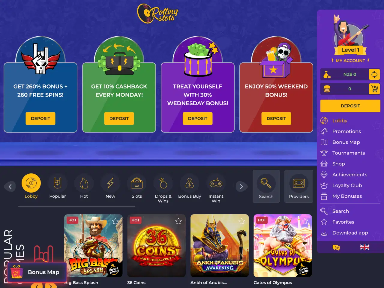 Yes, Rolling Slots Casino accepts deposits in various currencies, including NZD. You can choose the preferred currency while you create your account.
