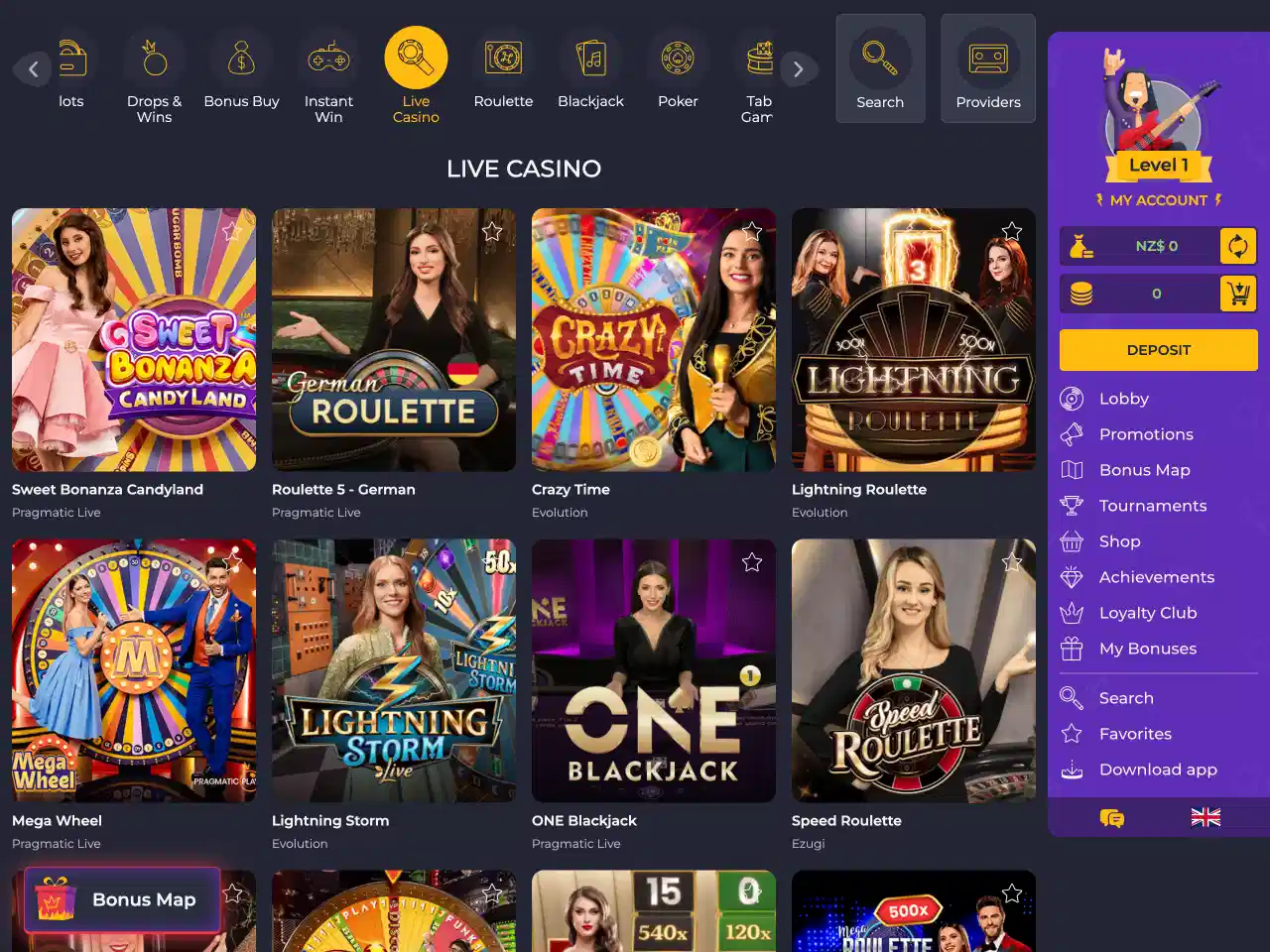 At Nomini Casino, pokies are a popular choice among players, offering a diverse gaming experience with various themes and features. Popular games listed are Big Bass Splash, Book of Dead, Gates of Olympus, and Moneyfest. Table games are the second most popular option among players, they encompass classics like roulette, blackjack, and poker.