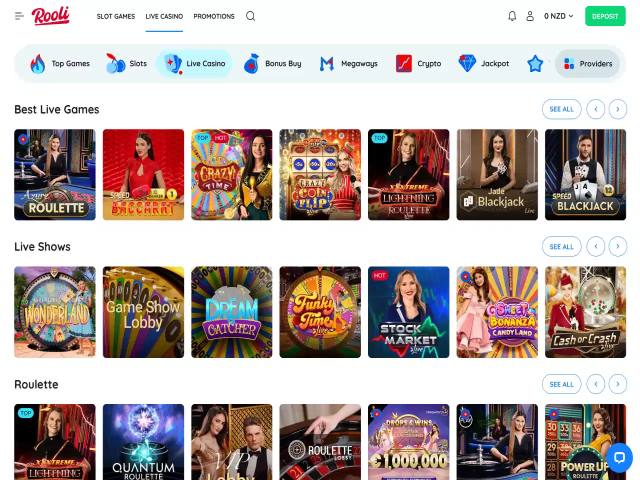 Rooli features games from more than 100 software providers, with Pragmatic Play, BGaming, Playson, Spinomenal, Yggdrasil, Relax Gaming, and Play’n GO offering the most titles. These providers dominate the pokies and live casino sections, with a wide variety of options available. Players can filter games by provider using the drop-down menu, which makes it easy to find favourites.