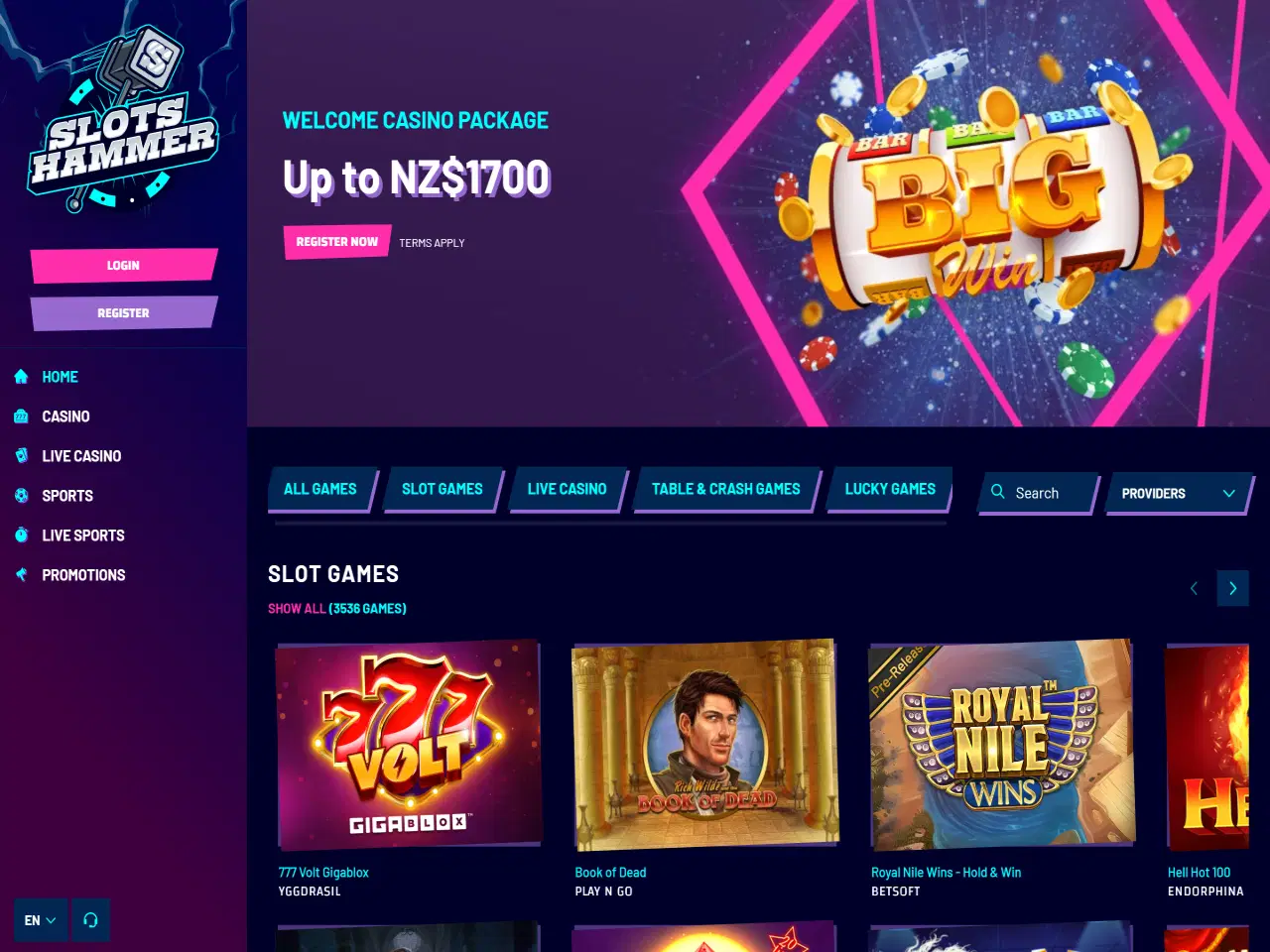 Slots Hammer Casino greets players with a game library of more than 4,000 games from 80+ creators. These games include 100+ live dealer titles, pokies, and table & crash options. Tailored for New Zealand audience, it supports NZD transactions and provides convenient payment options such as credit/debit cards, e-wallets, and vouchers. Yet, crypto and POLi are not available. Also, some of the users complained about withdrawal delays. At Slots Hammer Casino, gamblers can experience an expanded gambling experience opportunities provided by the opportunity to receive personalised bonus offers. Yet, one of the downsides of Slots Hammer is that there is no information about the VIP program directly on the website (it can only be accessed through customer support), which is a weakness of this casino.