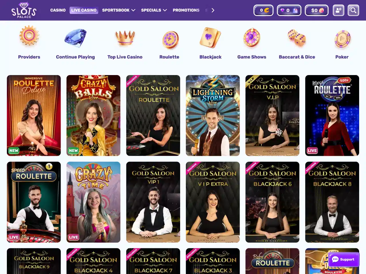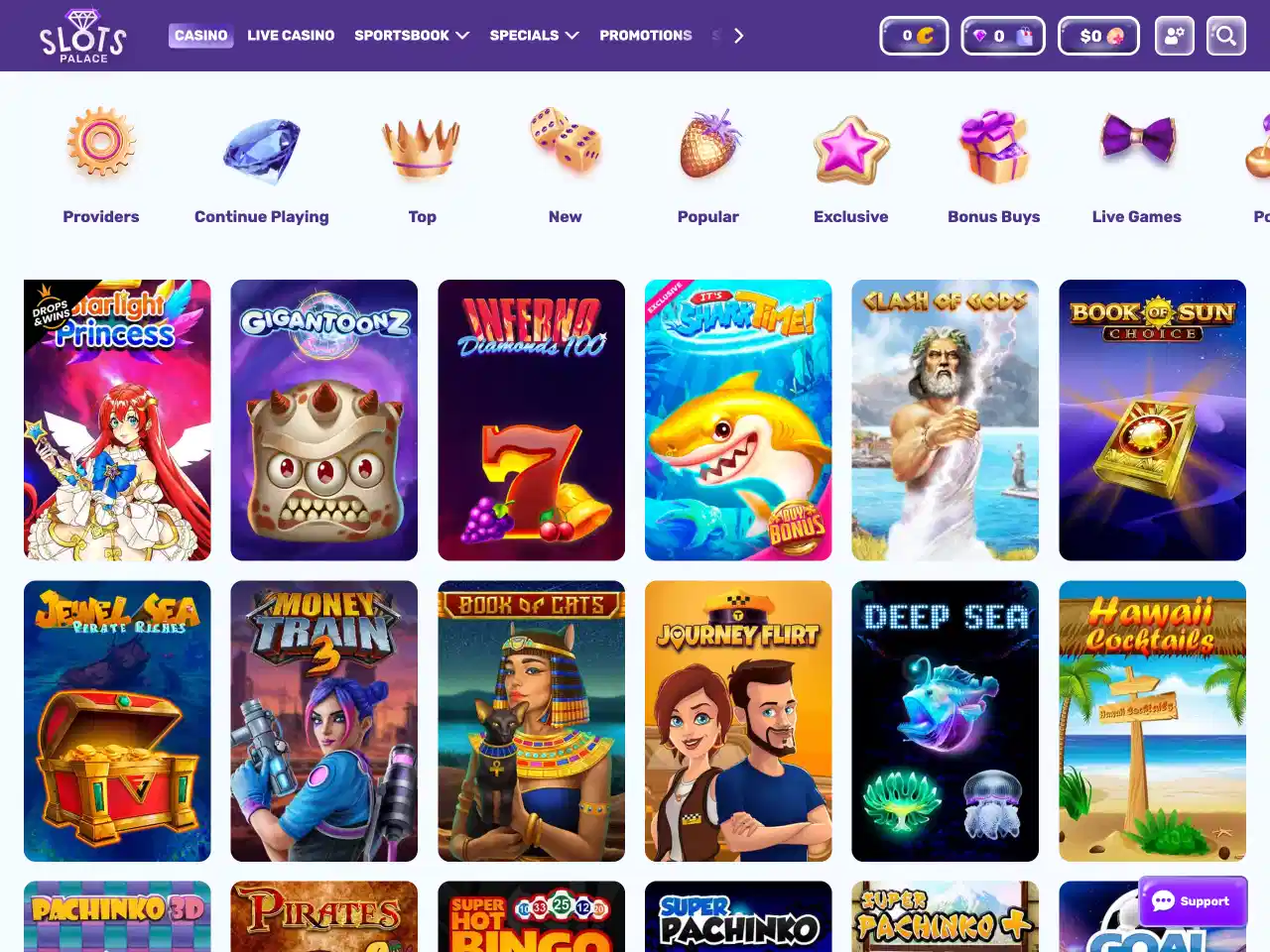 SlotsPalace highlights popular titles like Joker Cashpot, Big Bass Vegas, and Gates of Olympus. These appear first in the lobby and are playable on all devices. Also featured are Gold Digger, Fire Joker, and Book of Dead. Live hits include Lightning Roulette and Crazy Time. All trending tiles load well and work without bugs. The reason they are this popular may in high RTP for all games and engaging mechanics with built-in tools.