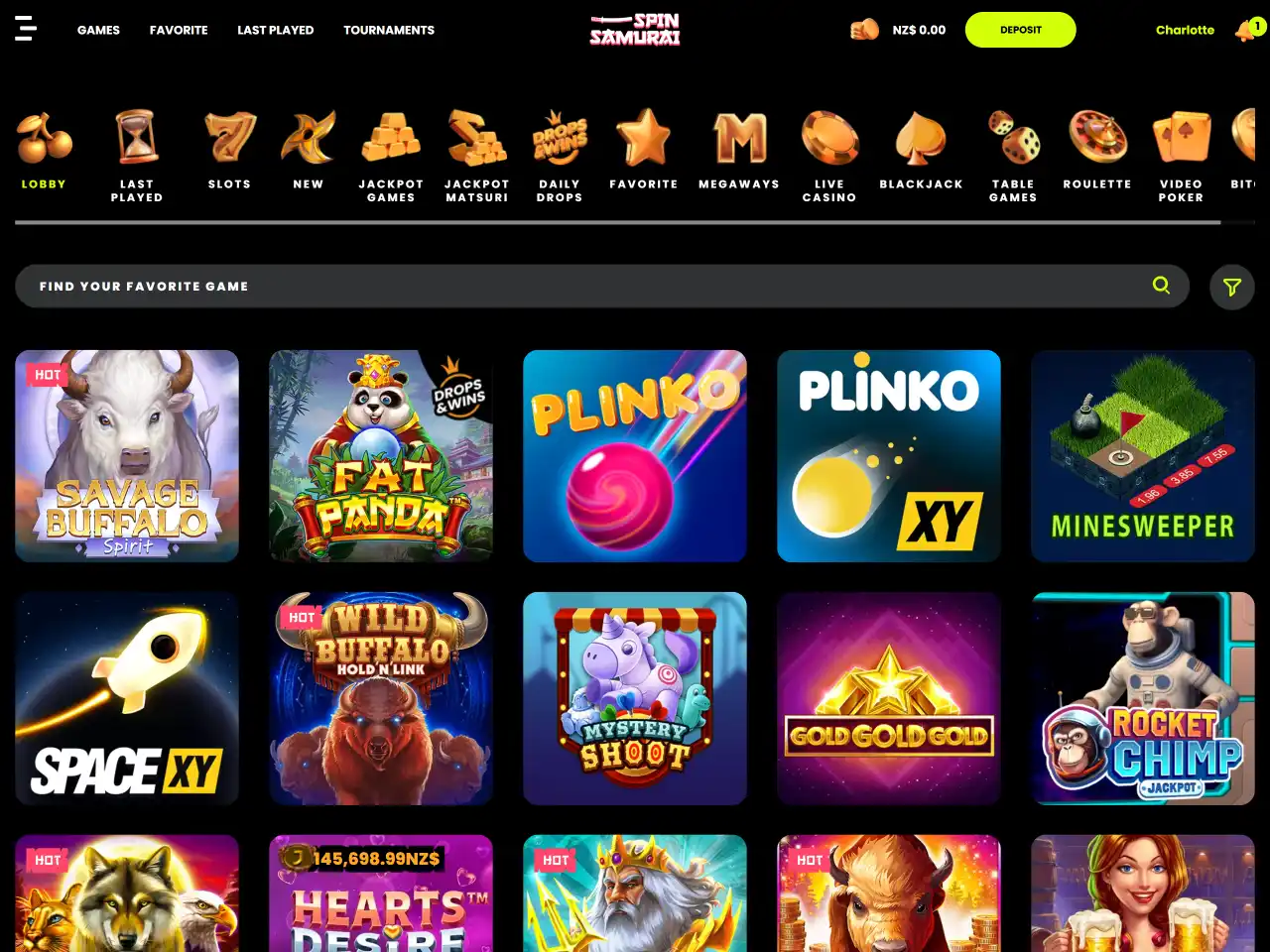 Spin Samurai Casino offers a wide selection of games, including a variety of pokies, table games, and live dealer options. The platform collaborates with numerous software providers, ensuring a broad range of gaming experiences. Yet, over time, pokies remain the most popular among New Zealand users. For example, some of the most-played titles are Big Bass Bonanza, Elvis Frog TRUEWAYS, Buffalo Train, Aztec Magic Deluxe, and Bonanza Billion. All these games have an RTP of over 96% and excite players with their bright interfaces. Overall, Spin Samurai Casino’s game library is designed to satisfy different player preferences, providing multiple options for entertainment.