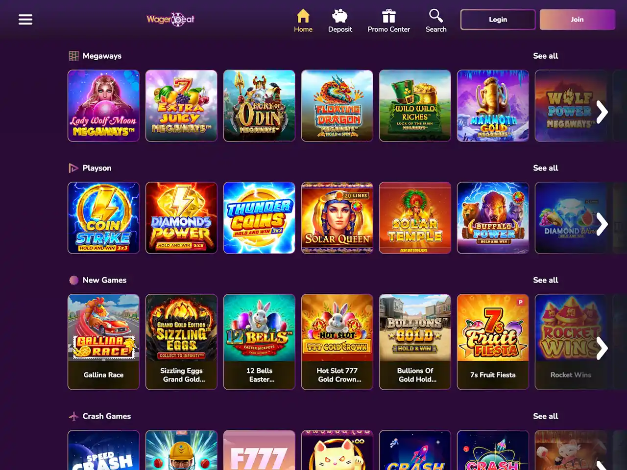 Despite a small number of games, Wager Beat's game collection is not as extensive as it could be, yet it presents gamblers with a variety of pokies, table games, and over 20 live games. The casino features pokies of various types, categorising them by mechanics, such as Megaways and Hold’n Win, and popularity. The table game assortment offers blackjack, poker, roulette, baccarat, and more popular gambles. Their live-dealer titles are also available, giving players a land-based casino environment. However, you won’t find a great variety of live games there, as Wager Beat features only around 20 titles.