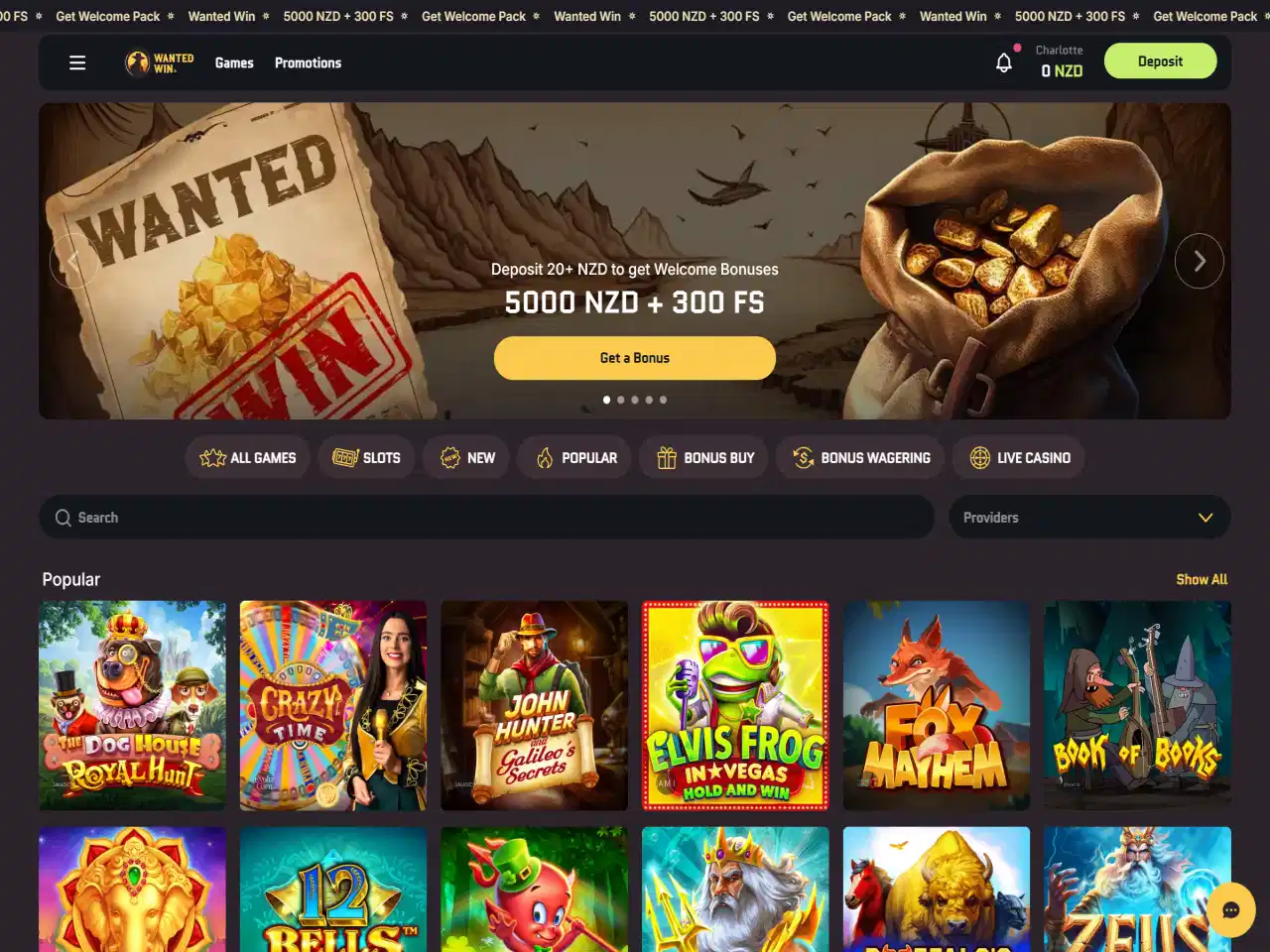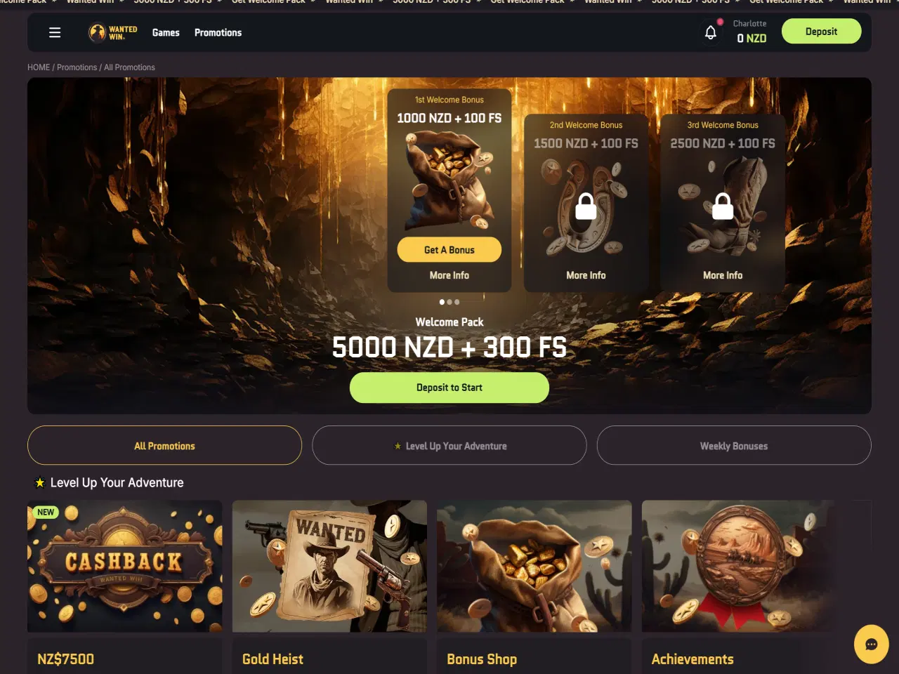 Wanted Win Casino's design features the Wild West interface along with a mini-game called Golden Heist, which allows further player interaction. The casino accepts NZD and has a minimum deposit limit of $20. Payment options that are available in Wanted Win include credit/debit cards, e-wallets, vouchers, and crypto. Deposits are instant and have no additional fees. For e-wallets, withdrawals are nearly instant, sometimes occurring within a few minutes, while bank transfers may take between three to seven days. Customer support can be contacted through live chat and e-mail, responding quickly and professionally. However, our testers noticed that some users claim that the KYC verification takes longer than at most other casinos.