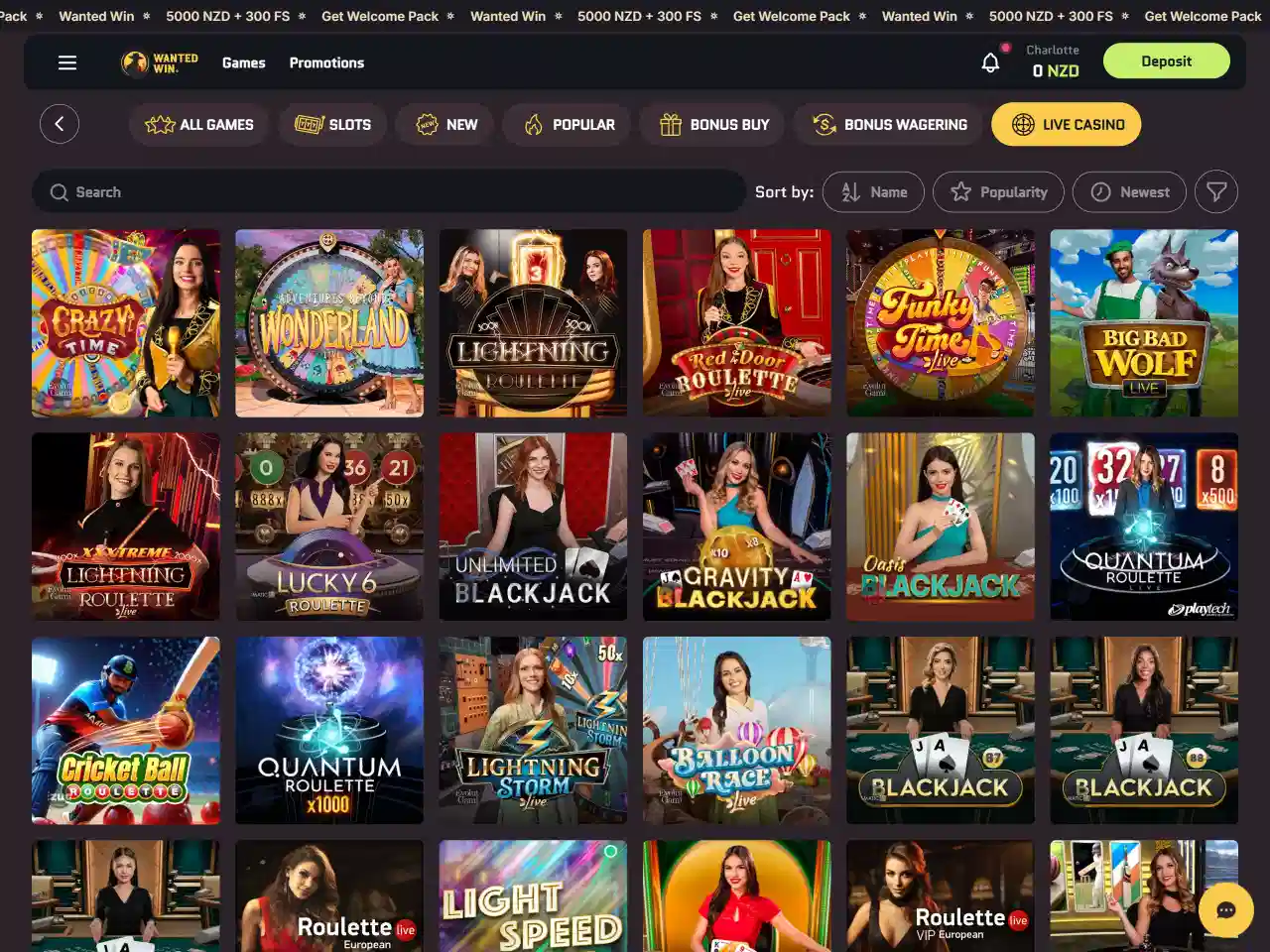 Games are diverse at Wanted Win Casino. It offers more than 6,000 games in total, including more than 550 live dealer titles — a notably large volume in the industry. These live games include blackjack, roulette, baccarat, poker, and game shows, streamed in real time with professional human hosts. The non-live catalogue includes virtual table games: video poker, bingo, scratch cards, keno, and dice-based games. Pokie machines are available in a wide range of reel setups and pay line configurations. Also, for players' convenience, there are separate game categories, such as Bonus Buy and Bonus Wagering. Besides, Wanted Win offers a Gold Heist mini-game that fits the Wild West theme and allows players to earn additional points. Game sessions are stable and load quickly. A Provably Fair feature is available for a enhanced transparancy of the gamblers' results.