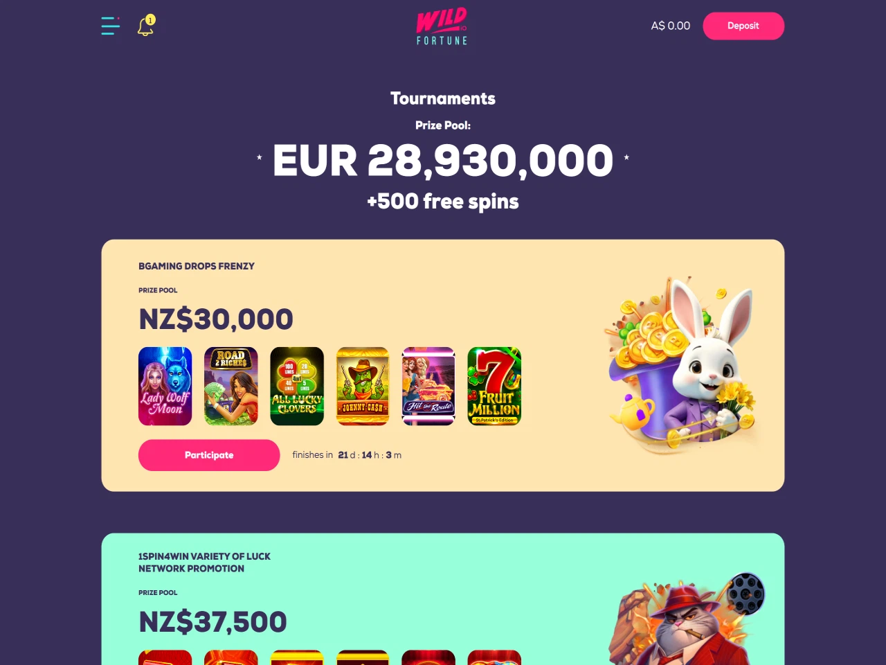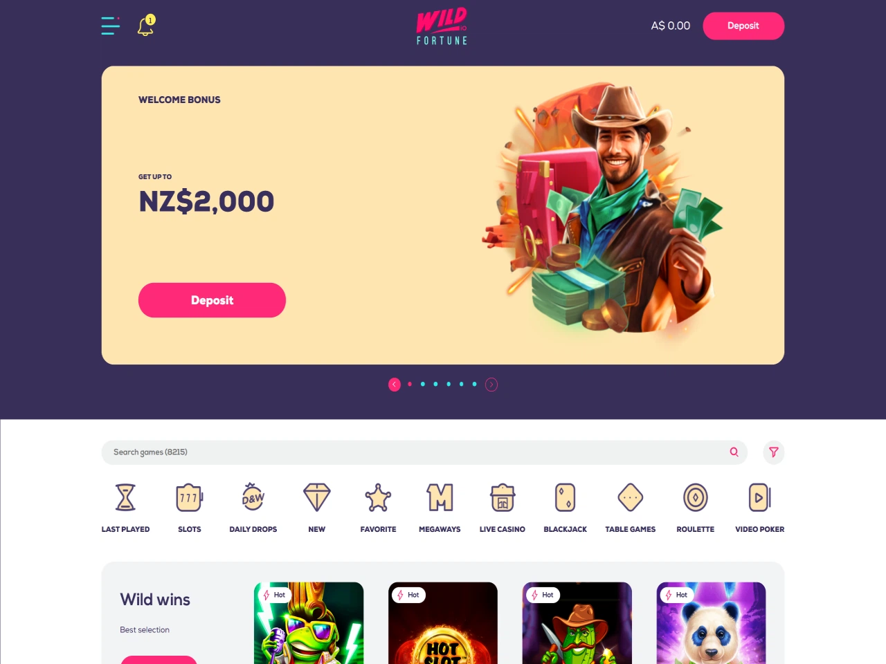 Yes, Wild Fortune accepts players from New Zealand. NZD is supported as a currency, and the site defaults to English (New Zealand) for local users.
